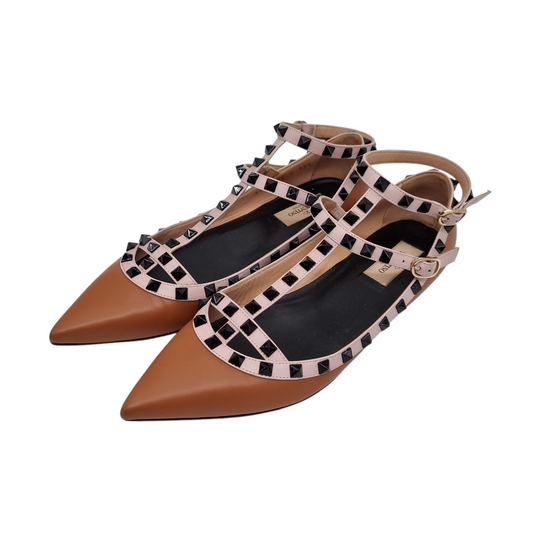 Valentino Rockstud Point Toe Flats Brown Size 39.5/26.5 dari ujung