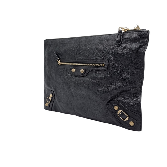Balenciaga Classic Clutch Agneu Black GHW #V 2020 Size 34x24