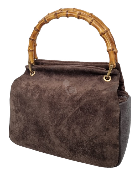 Gucci Bamboo Handbag Suede Brown Size 25x9x20