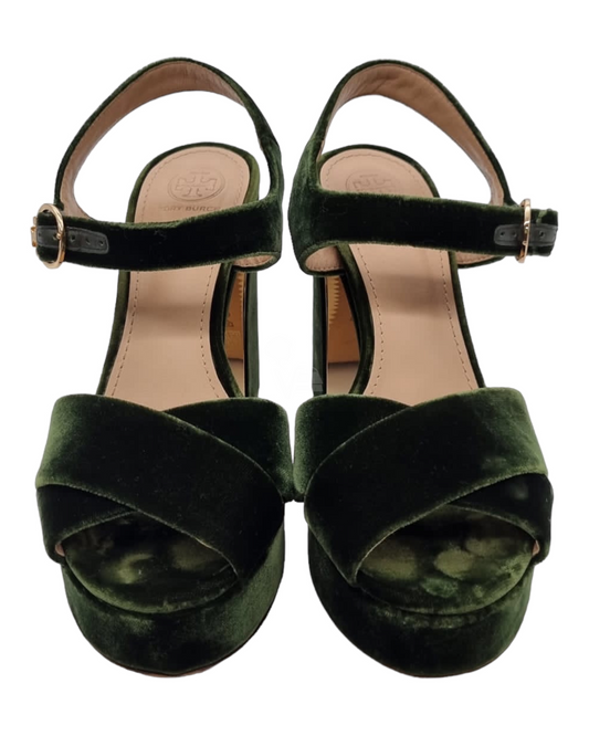 Tory Burch Loretta 115MM Platform Sandal Velvet Banana Leaf Size 7,5/24,5