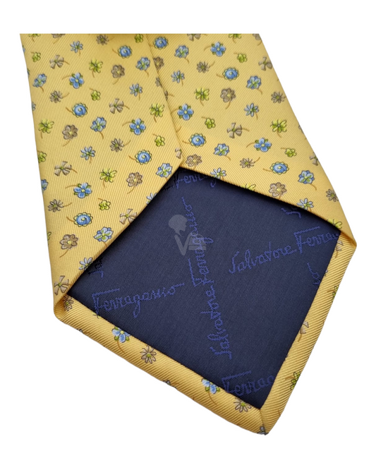 Salvatore Ferragamo Blue Flower Print Tie Yellow