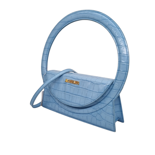 Jacquemus Le Sac Blue Rond Croco Embossed Size 24x7x13