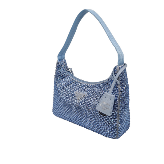 Prada Re Edition Crystal Embellished Satin Blue Size 22x6x16