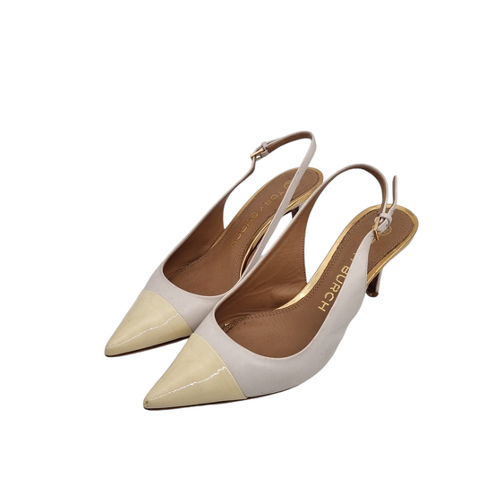 Tory Burch Kitten Heels Slingback White Cream Size 9/26 Dari Ujung