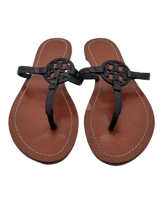 Tory Burch Sandal Gabriel Vegan Leather Black Brown Size 8M/25,5