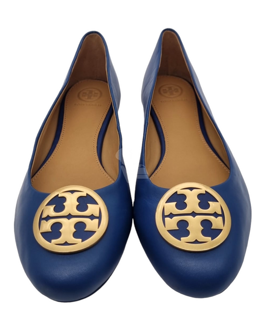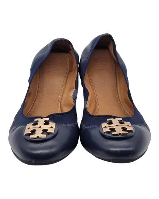Tory Burch Claire Elastic Travel Balet Nappa Leather Royal Navy Size 7,5/24