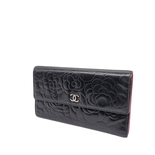 Chanel Camellia Long Wallet Black #14 Size 20x12