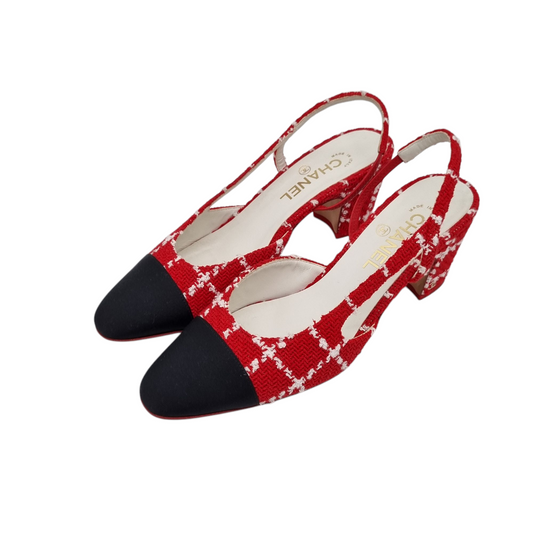 Chanel Pump Slingbag Tweed Red Size 39,5/26,5