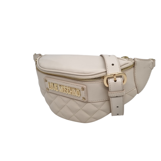 Moshino Lettering Quilted Belt Bag Ivory Size 25x15