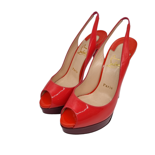 Christian Louboutin Lady Peep Sling Patent Calf Pink Size 37/24