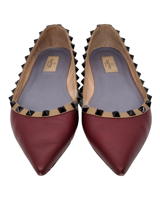 Valentino Rockstud Leather Ballet Flats Maroon Size 39/26 Dari Ujung