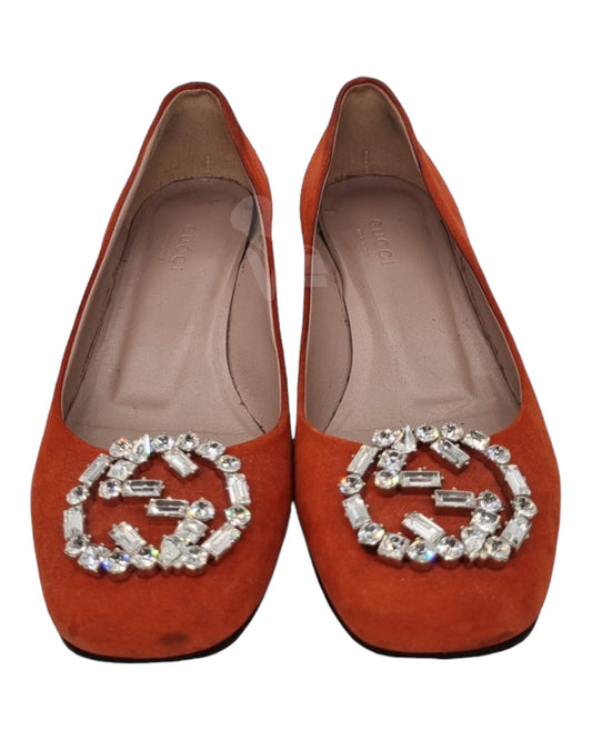 Gucci Kid Scamosciato Oxidation Suede Orange Size 35,5 insole 23
