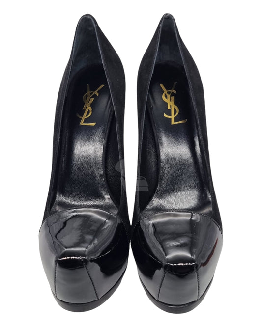 Yves Saint Laurent Kid Scamosciato Black Suede Size 38 insole 24