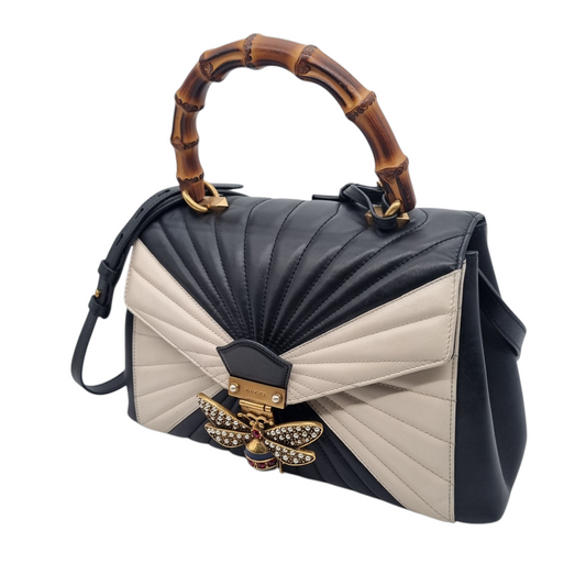 Gucci Bamboo Queen Margaret Top Handle Black White Size 30x8x22