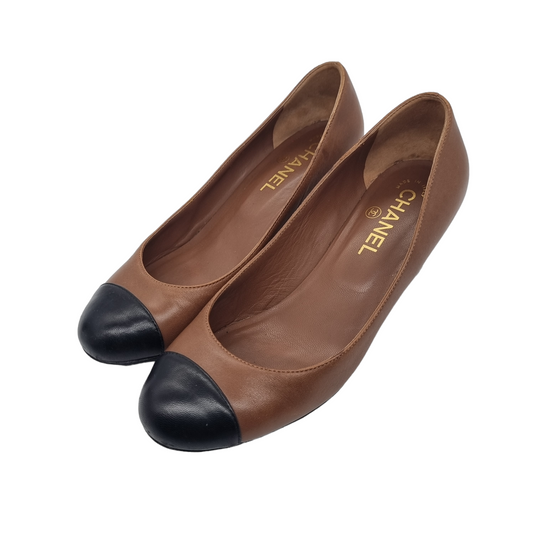Chanel lambskin Cap toe wedges Size 37.5/24.5